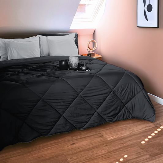 4-Jahreszeiten Bettdecke ohne Bezug aus Mattsatin Schwarz