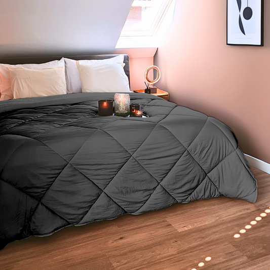 4-Jahreszeiten Bettdecke ohne Bezug aus Mattsatin Anthrazit