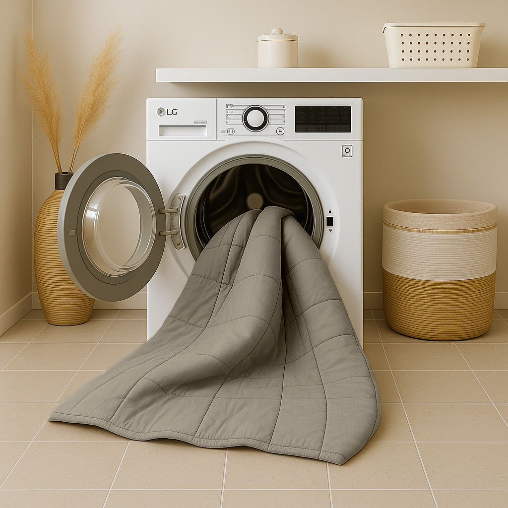 Stecken Sie Ihre Bettdecke mühelos auf einmal in die Waschmaschine.